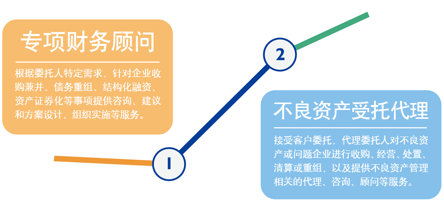 顾问咨询业务是万博体育3.0客户端下载资管公司运用自身在不良资产收处经营以及广泛的投融资渠道及资产管理平台,接受客户委托,为客户提供包括并购重组、资产交易、财务管理、企业托管和清算、法律及风险管理等领域提供咨询顾问服务等。